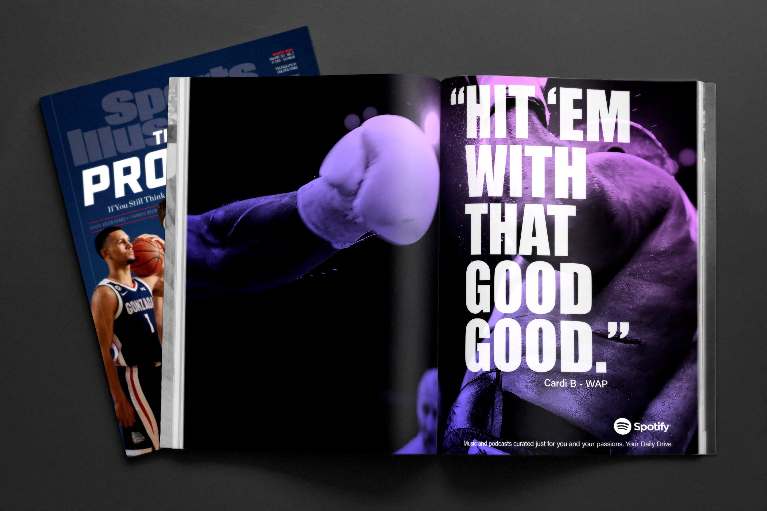 Since the new purpose of "Your Daily Drive" is to focus on hobbies / aspirations, hitting home to people in print is important. So, Spotify will have print ads in niche magazines that will emotionally hit with these magazines readers.
